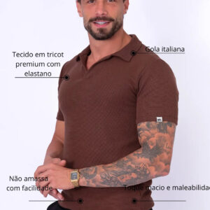 Camisa Polo Italiana Tricot Marrom Café