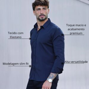 Camisa Masculina Manga Longa Slim Preta