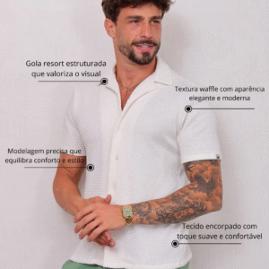 Camisa Masculina Slim Canelada Branca