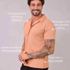 Camisa Masculina Slim Canelada Bege