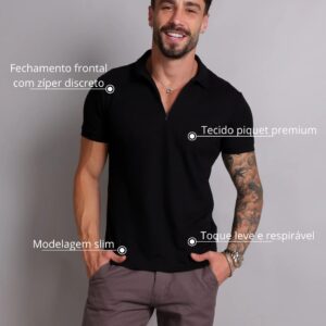Camisa Polo Ziper Preta
