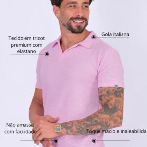 Camisa Polo Italiana Tricot Rosa Claro