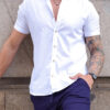 Camisa Masculina Manga Curta Gola Padre Slim Branca: O Toque de Elegância Que Você Precisa