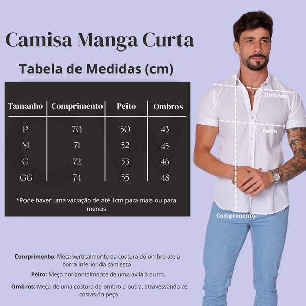 A manutenção dessa camisa é simples, pois o tecido resiste bem a lavagens e mantém a cor e o formato por muito tempo. A versatilidade da Camisa Masculina Manga Curta Gola Padre Slim Branca