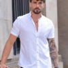 Camisa Masculina Manga Curta Gola Padre Slim Branca: O Toque de Elegância Que Você Precisa