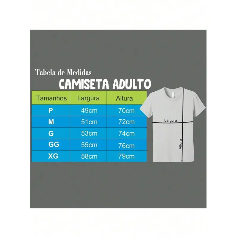 Material: Algodão Premium Fio 30.1 – Algumas cores podem haver pequenas quantidades de poliéster por conta da pigmentação da cor do tecido.